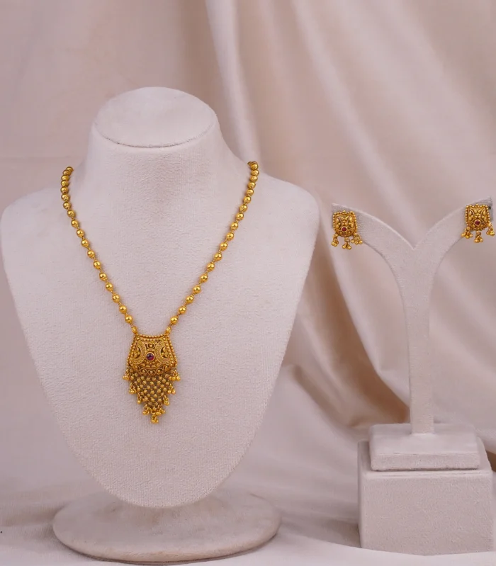 Embrace the richness of tradition with this Antique Zaalar Pendant, crafted in a classic temple-inspired design. The intricate patterns and antique gold finish give it a vintage charm, while the Zaalar detailing adds graceful movement and depth. Ideal for festive occasions, pooja ceremonies, or bridal wear, this pendant brings a royal elegance to your ensemble. Its timeless appeal connects generations — a piece that feels both heirloom and personal, perfect for celebrating culture and tradition.