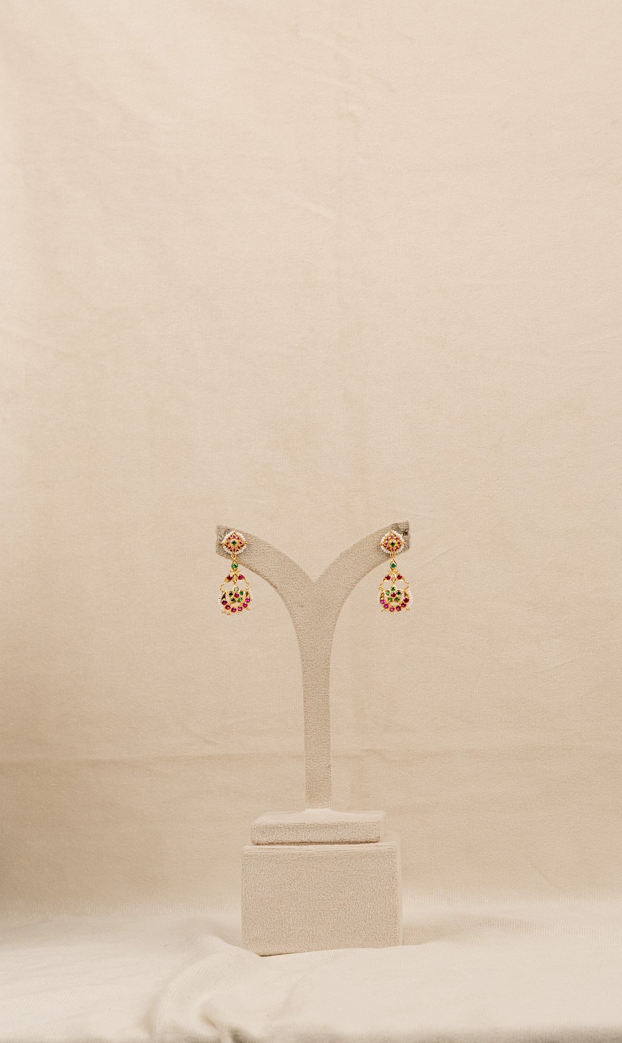 This necklace set features striking emerald green stones paired with detailed meenakari work and matching designer earrings. Perfect for festivals, weddings, and family celebrations, it adds a graceful pop of colour to any ethnic outfit. Lightweight and versatile, it pairs well with sarees, lehengas, and Indo-traditional looks, bringing together comfort and elegance.
